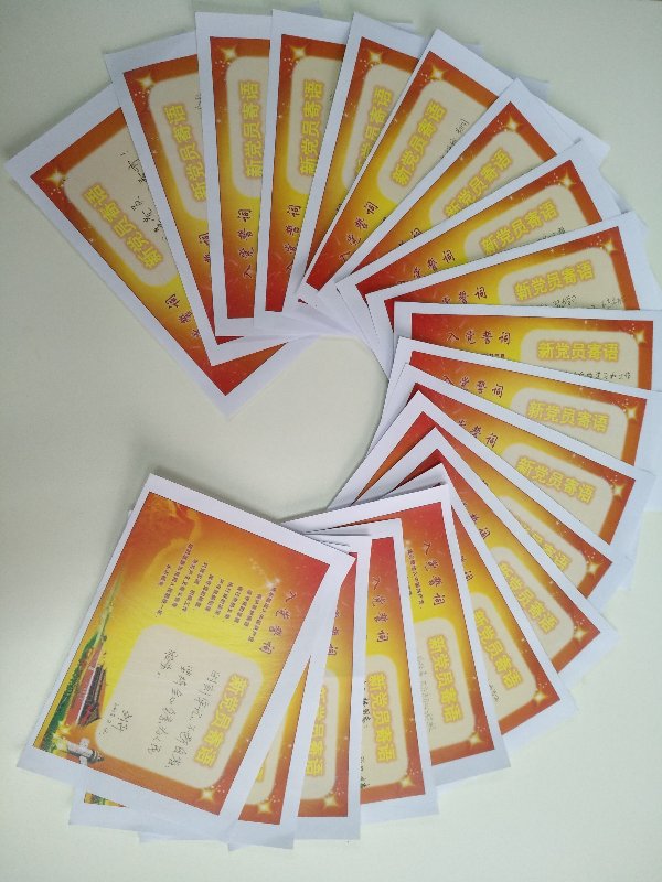 宣誓完毕,支部的党员依次说出了为我准备的新党员寄语,这是支部第一次为预备党员组织这种活动,现场聆听老师和同学们的叮咛与期望,我感觉非常幸福。寄语中提到最多的就是不忘初心:不忘初心,坚定理想信念;不忘初心,勇敢前行;不忘初心,严格要求自己;不忘初心,认真做事,诚信待人;不忘初心,永远跟党走。优秀的榜样就在身边,雷厉老师的“我是党员,一切向我看齐”,给我指明了学习的标杆,只有自身意志品质过硬,才有底气、有资格说出“我是党员”。刘卉老师的“不断自省”是党员保持党性的好方法。“打铁必须自身硬”,吴晓薇老师的“学好本事,精通专业”,也是我现阶段努力的目标。